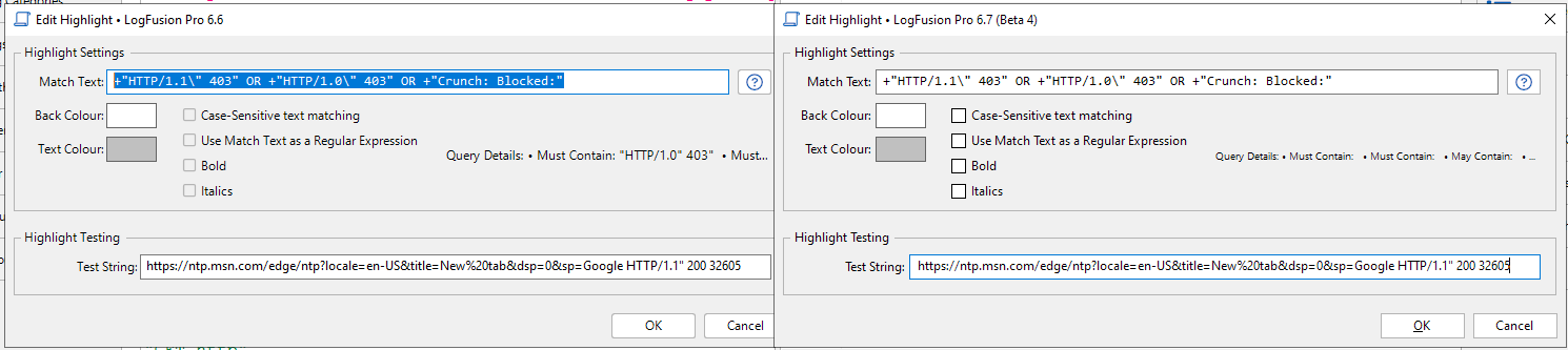 Could you send me over a backup of your settings? You can grab them in the LogFusion Settings > Options > Export Settings.